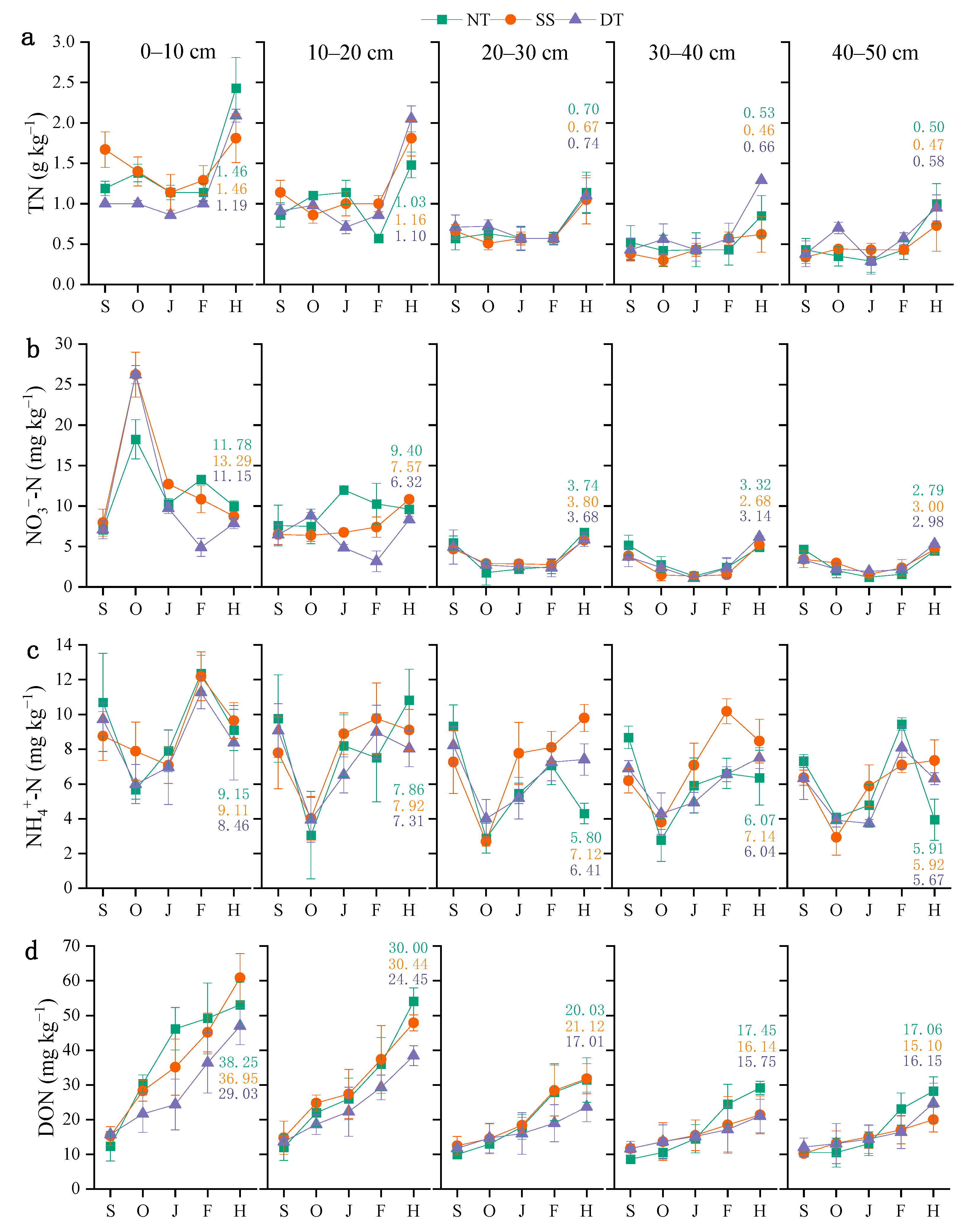 3.2. Total Nitrogen (TN) and Its Labile Fractions