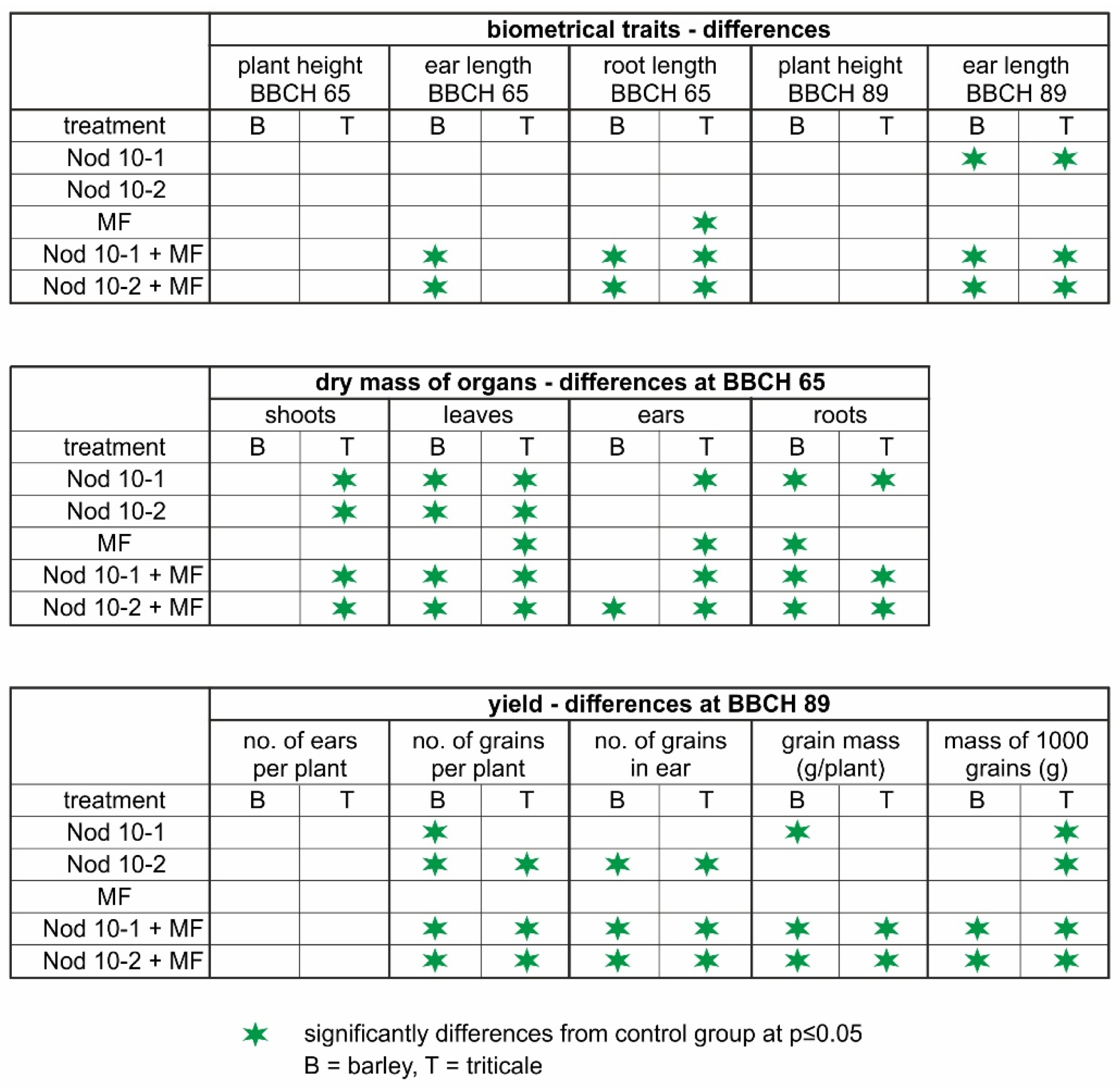 | Yield Element | Treatment * | Barley | Triticale |