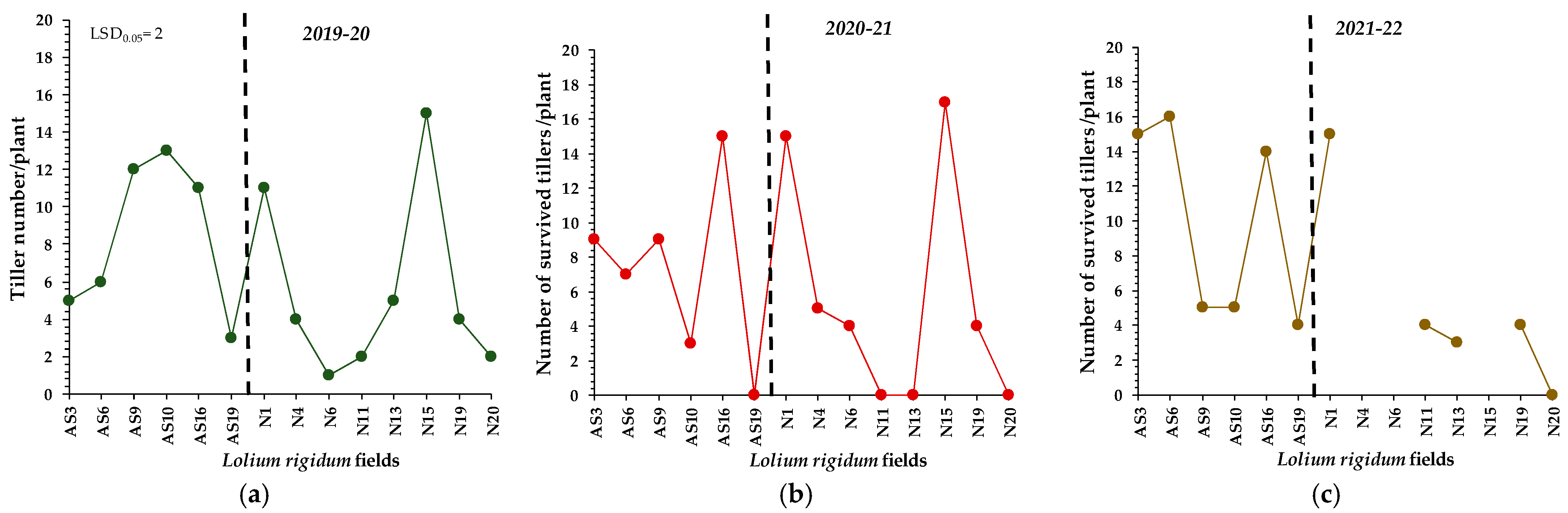 | Mean tiller number/plant 2019–20 | −0.157 | −0.118 | 0.047 | −0.403 | −0.157 |