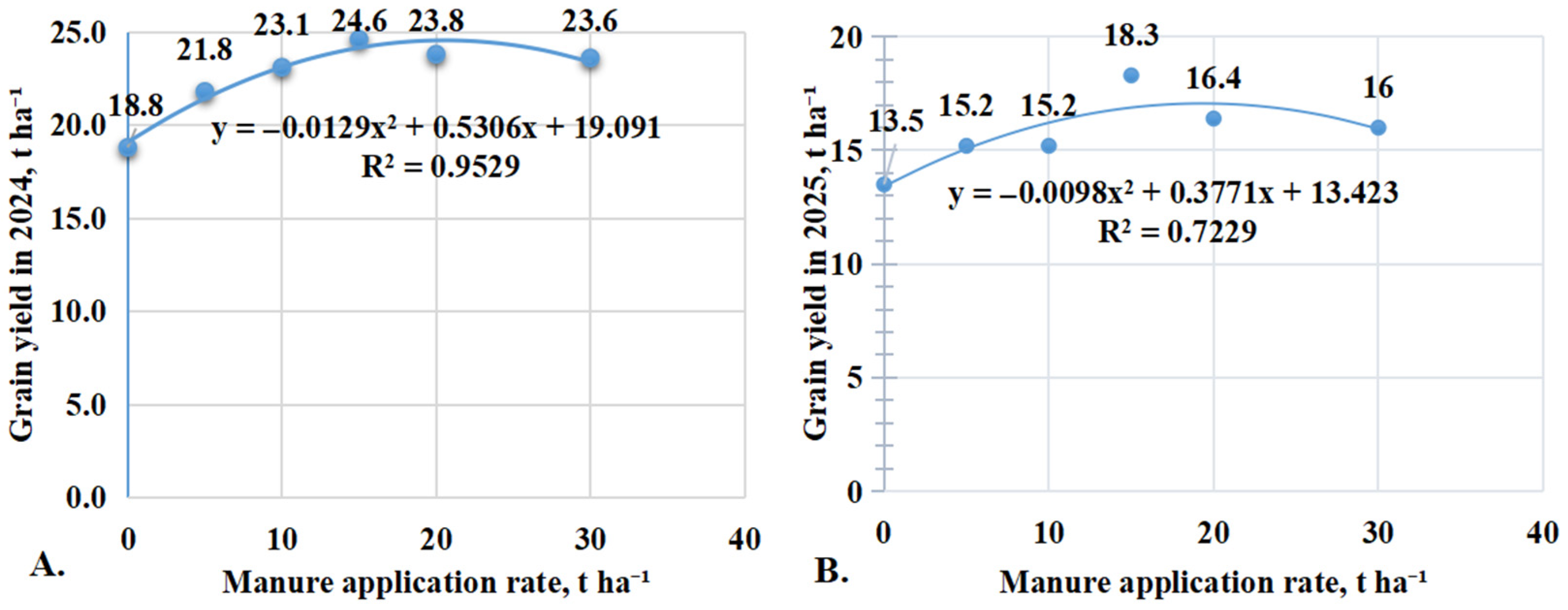 3.7. Relationship Between Manure Application Rate and Productivity