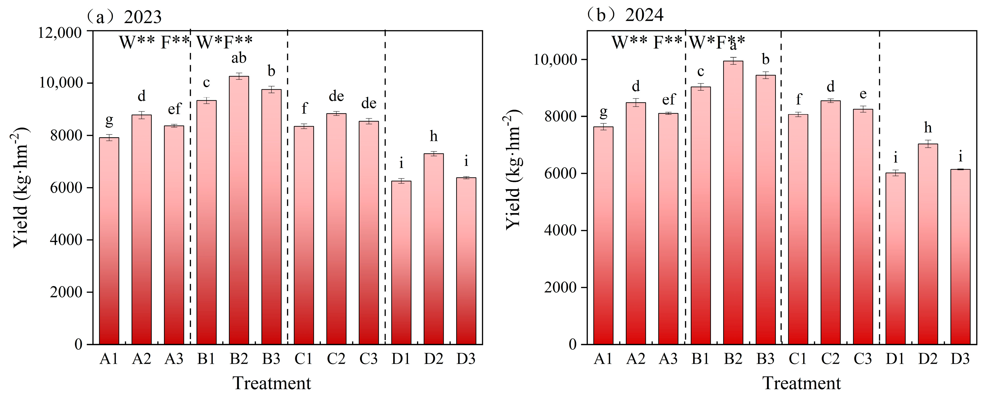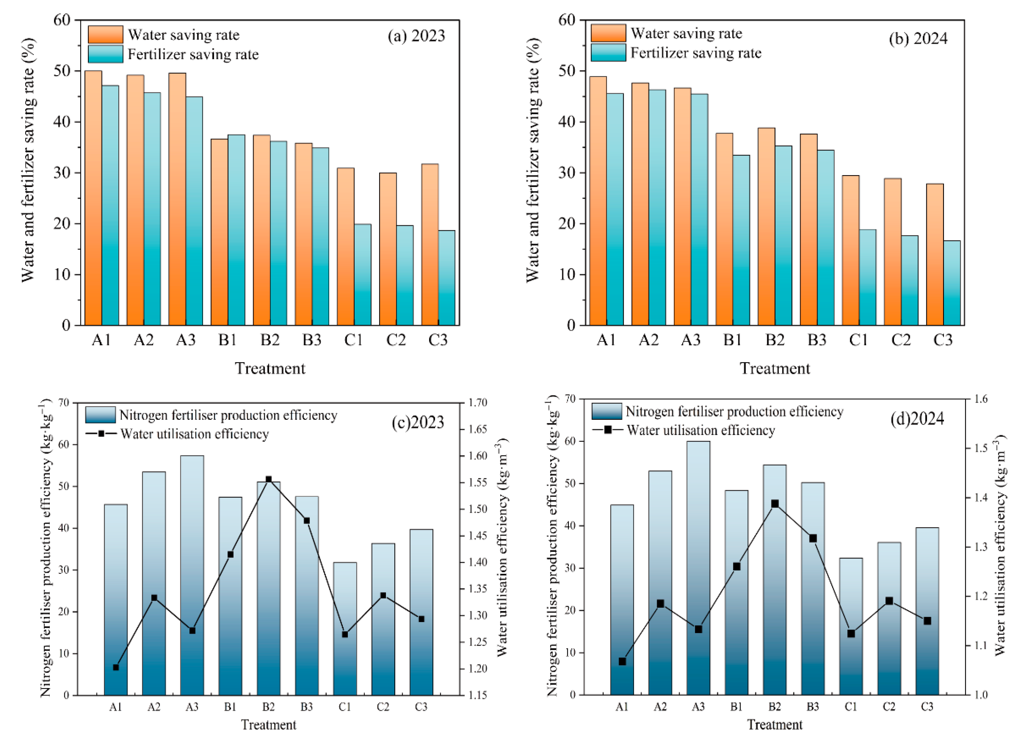| Treatment | Production Composition for the Year 2023 | Production Composition for the Year 2024 | ||||