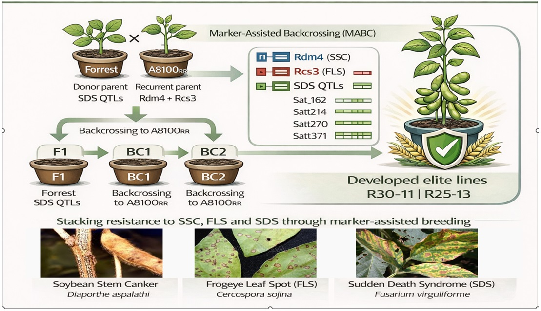 Marker-Assisted Breeding for Pyramiding Multiple Resistance to Soybean Fungal Diseases