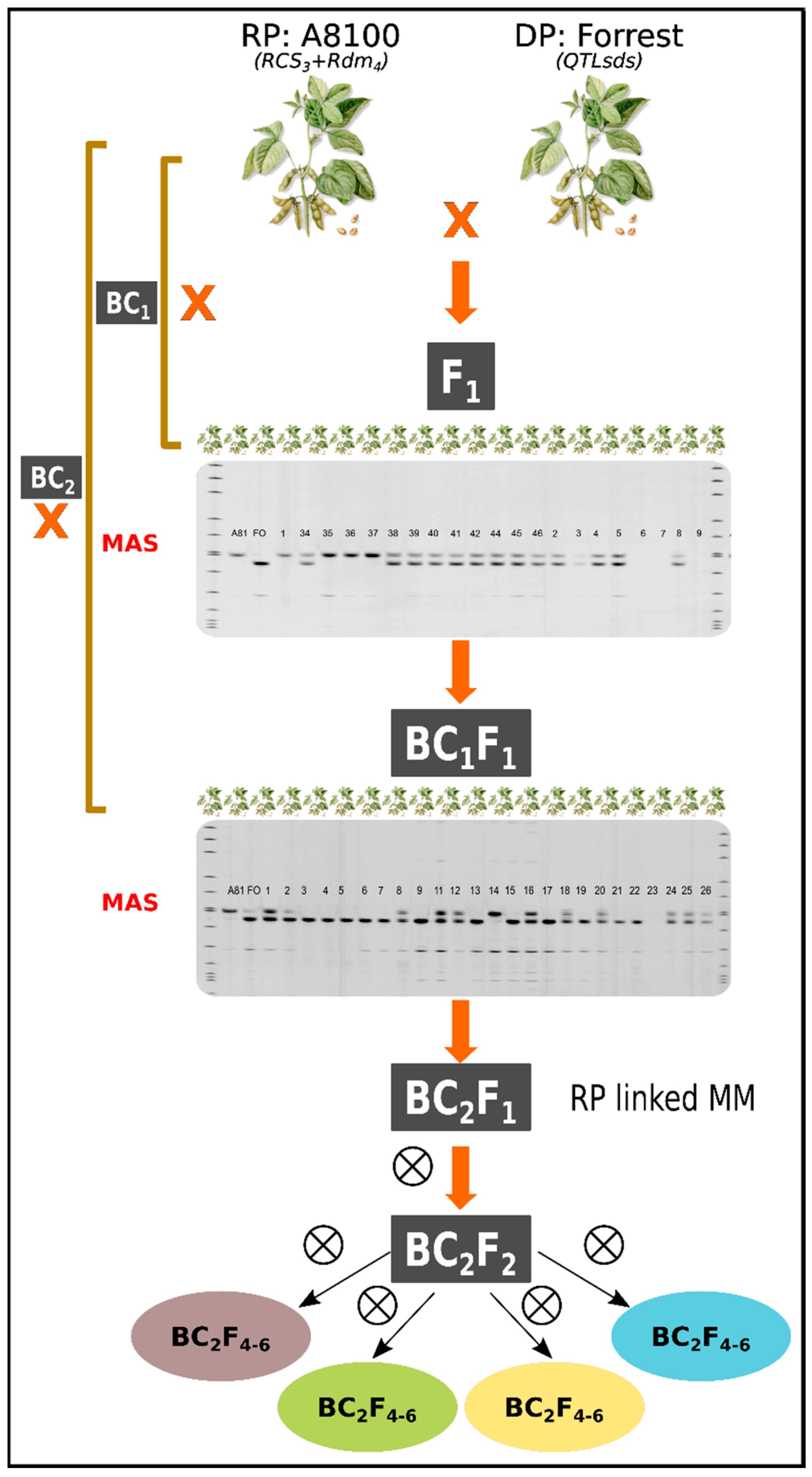 2.5.1. Marker-Assisted Backcrossing Scheme (MABC)