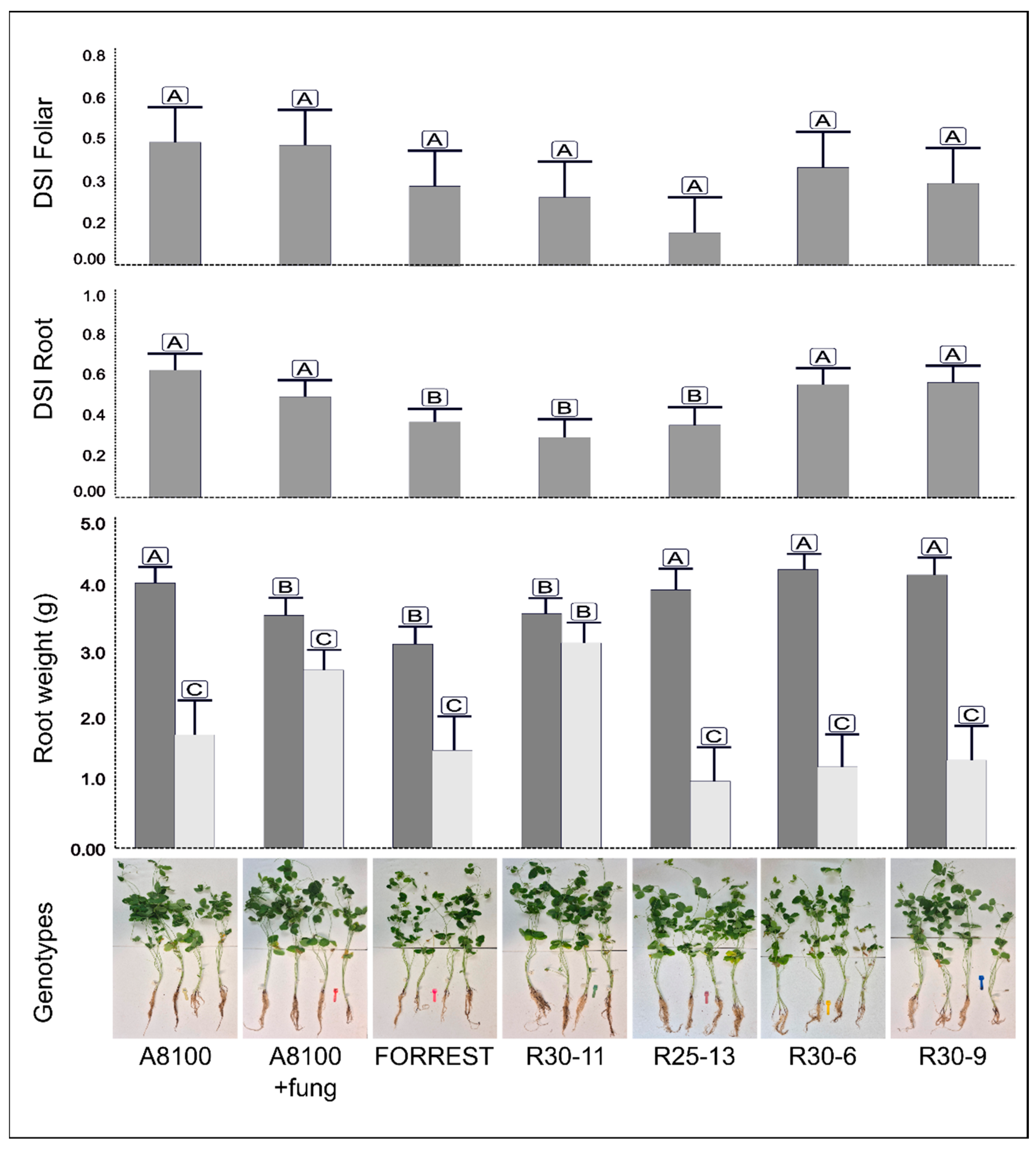 - Luckew, A.S.; Cianzio, S.R.; Leandro, L.F. Screening Method for Distinguishing Soybean Resistance to Fusarium virguliforme in Resistant × Resistant Crosses. Crop Sci. 2012, 52, 2215–2223. [Google Scholar] [CrossRef]