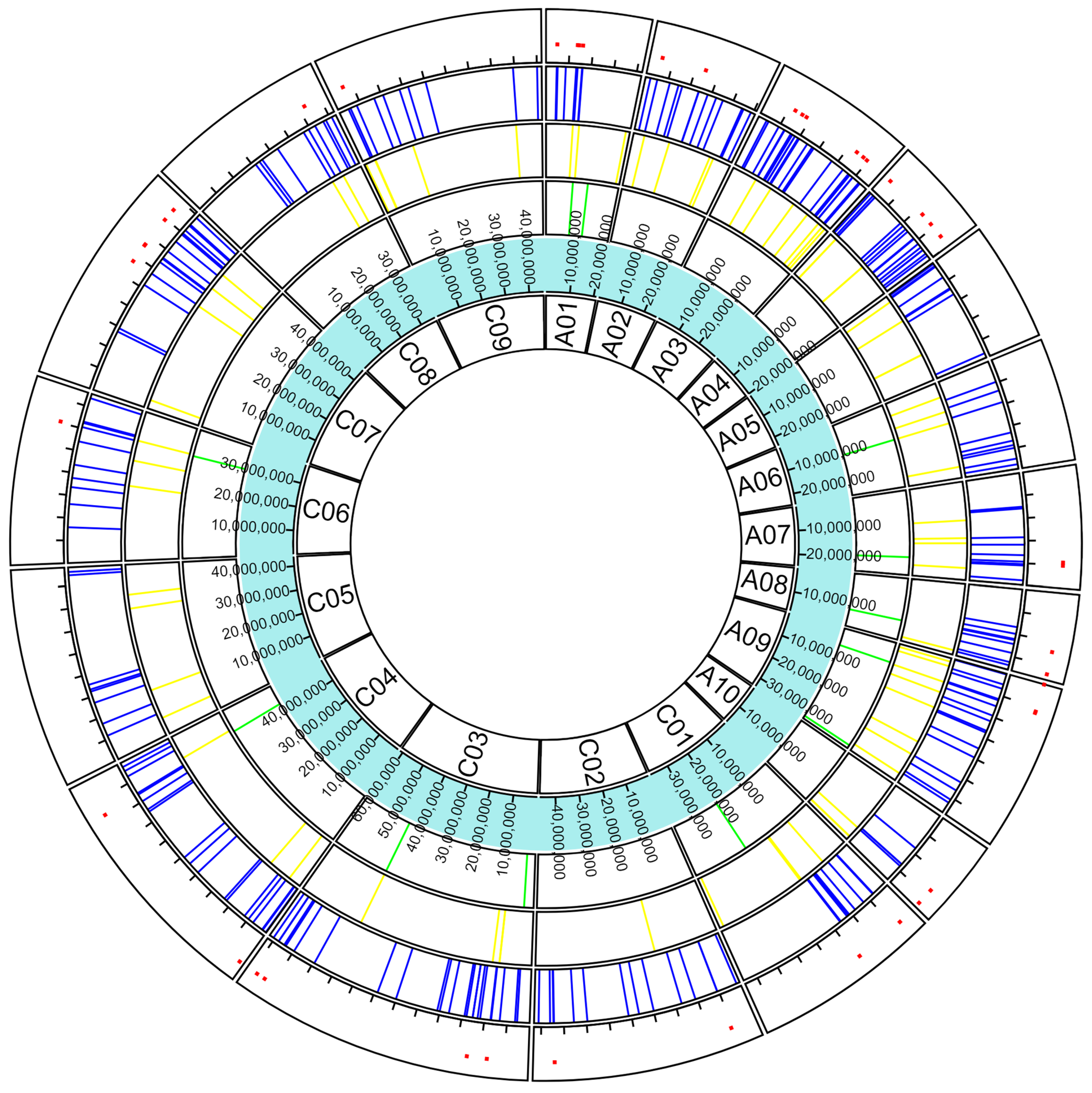 - Chalhoub, B.; Denoeud, F.; Liu, S.; Parkin, I.A.; Tang, H.; Wang, X.; Chiquet, J.; Belcram, H.; Tong, C.; Samans, B. Early allopolyploid evolution in the post-Neolithic Brassica napus oilseed genome. Science 2014, 345, 950–953. [Google Scholar] [CrossRef] [PubMed]
