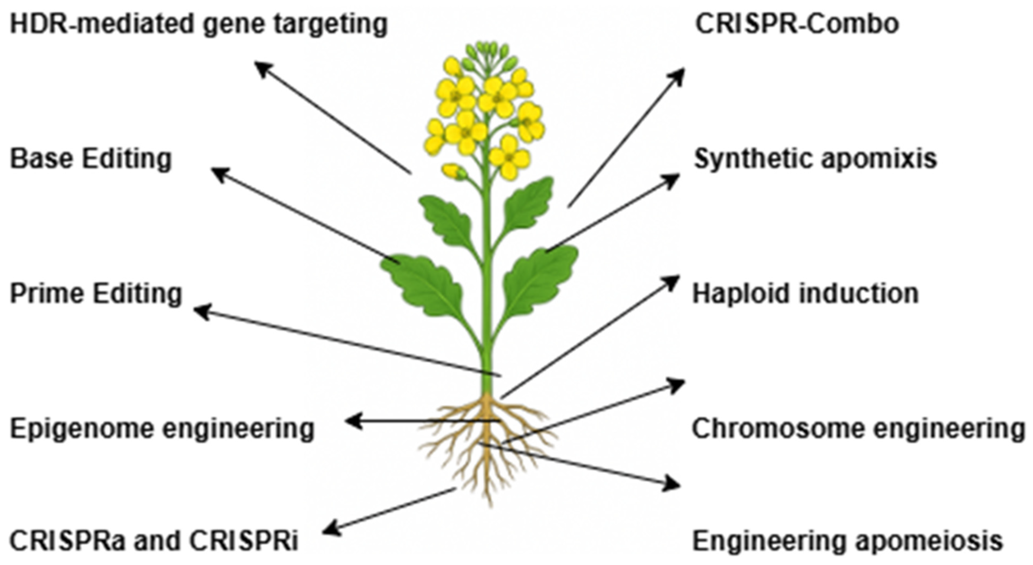| Herbicide | BnaA06.RGA and BnaALS | Growth negative regulator, Herbicides susceptible | CRISPR–Cas9 base editing | Improve herbicide tolerance and dwarf phenotype | [165] |