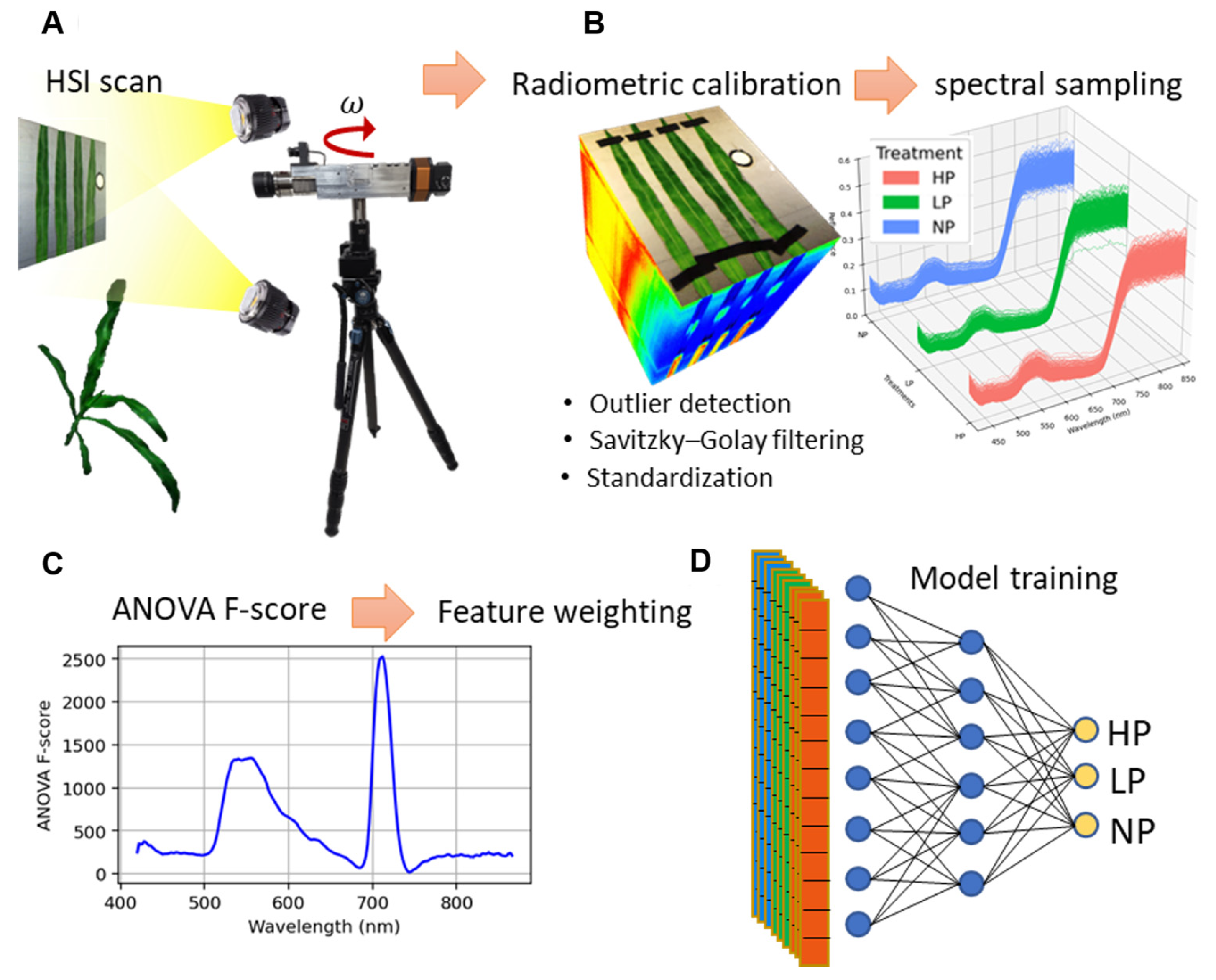 Chicago/Turabian StyleKiddee, Sutee, Chalongrat Daengngam, Surachet Wongarrayapanich, Jing Yi Lau, Acga Cheng, and Lompong Klinnawee. 2026. "Detection of Phosphorus Deficiency Using Hyperspectral Imaging for Early Characterization of Asymptomatic Growth and Photosynthetic Symptoms in Maize" Agronomy 16, no. 8: 772. https://doi.org/10.3390/agronomy16080772