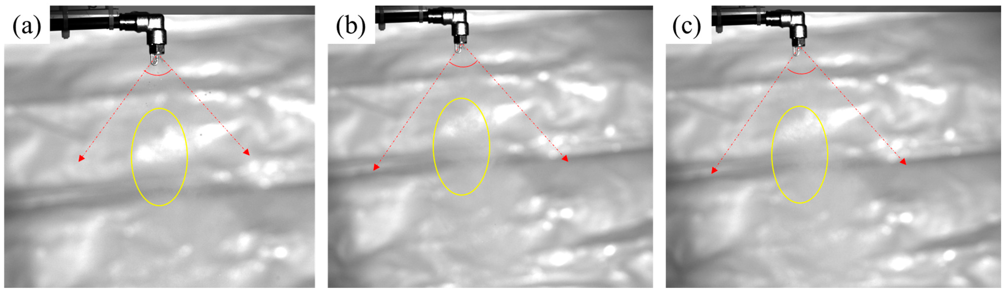 3.2. Droplet Size Distribution of the Fixed Pipeline Spray System