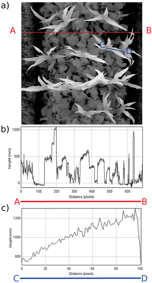 A number of other sensors can provide 3D structural information. Perhaps the best known and most widely used type of sensor for 3D canopy reconstruction is LiDAR [51,52,53]. Such laser systems have been used for rapid LAI mapping [54] and to estimate the plant area density profiles of a wheat canopy [55]. Simpler alternatives, though having rather lower spatial resolution or range than LiDAR, include depth cameras based on time-of-flight [56,57], ultrasonic sensors [37] and even consumer-grade gaming interfaces, such as the Microsoft Kinect [58], all of which have been used for the characterisation of different canopies [52,59,60].