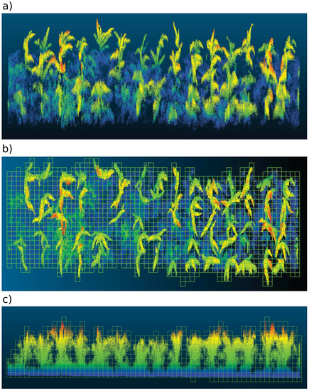 - Hosoi, F.; Omasa, K. Estimating vertical plant area density profile and growth parameters of a wheat canopy at different growth stages using three-dimensional portable lidar imaging. ISPRS J. Photogramm. Remote Sens. 2009, 64, 151–158. [Google Scholar] [CrossRef]