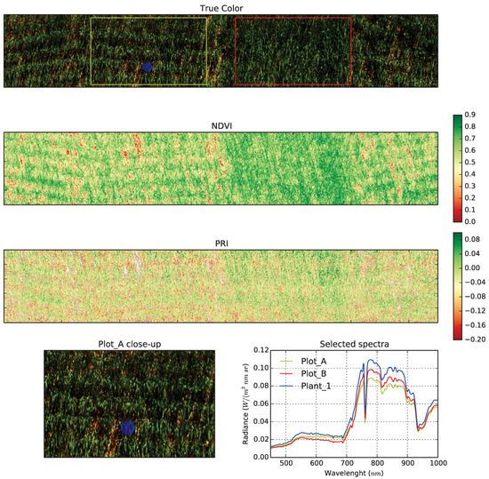 | Airborne | Limitations on the weight of the payload depending on the platform; a lack of turnkey systems; spatial resolution depends on speed and altitude | Can cover the whole experiment in a very short time, getting a snapshot of all of the plots without changes in the environmental conditions |