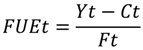 where FUEt is the agronomic fertilizer use efficiency of treatment t; Yt is the grain yield of treatment t; Ct is the grain yield of the control treatment; and Ft is the rate of fertilizer used for treatment t.
