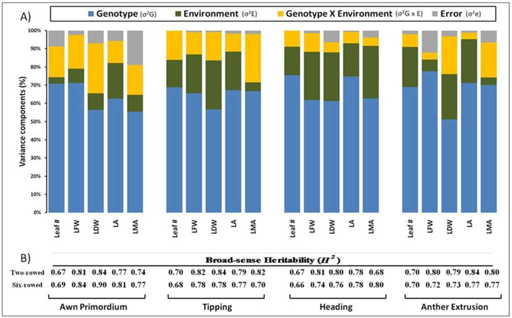 - Forster, B.P.; Franckowiak, J.D.; Lundqvist, U.; Lyon, J.; Pitkethly, I.; Thomas, W.T.B. The barley phytomer. Ann. Bot. 2007, 100, 725–733. [Google Scholar] [CrossRef] [PubMed]