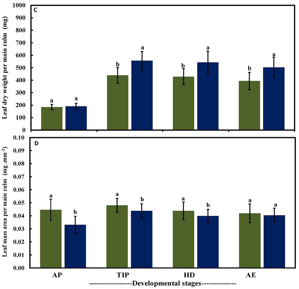 | Yield Components | Leaf Blade Area per Main Culm (mm2) | ||||||||