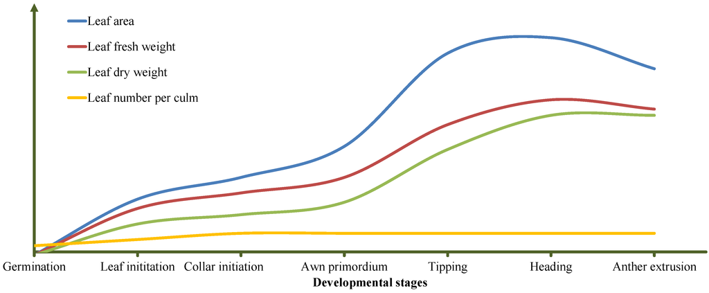 Alqudah, A.M.; Schnurbusch, T. Barley Leaf Area and Leaf Growth Rates Are Maximized during the Pre-Anthesis Phase. Agronomy 2015, 5, 107-129. https://doi.org/10.3390/agronomy5020107