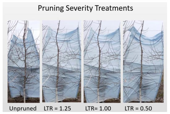 - Schupp, J.R.; Winzeler, H.E.; Kon, T.M.; Marini, R.P.; Baugher, T.A.; Kime, L.F.; Schupp, M.A. A method for quantifying whole-tree pruning severity in mature tall spindle apple plantings. Hortic. Sci. 2017, 52, 1233–1240. [Google Scholar] [CrossRef]