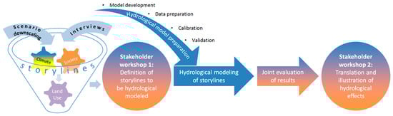 Bottom-up approaches start with an assessment of the factors of resilience or vulnerability, and seek to assess the capability to cope with the effects of climate change. The main research question of these studies is to estimate the combined effects of climate and socio-economic change on the vulnerability and resilience of socio-economic systems. Such resilience-based approaches have been criticized as being too complex, research intensive, time consuming, costly, and difficult to compare [12]. If the downscaling of global scenarios uses a bottom-up approach, relevant information is often defined in cooperation with stakeholders, resulting in region-specific scenarios. Stakeholder interaction involves the assessment of what is relevant for decision making. Regionally downscaled participatory scenario development integrates stakeholder views with research to understand long-term changes, and investigates the potential futures of socio-ecological systems [1,18,19,20]. An example of such an approach is the creation of a knowledge-to-action-network in Idaho (USA) [21], where stakeholders and researches decided to plan for a future with less water as an effect of climate change.