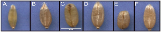 - Jamil, M.; Ali, A.; Ghafoor, A.; Akbar, K.F.; Napar, A.A.; Naveed, N.H.; Yasin, N.A.; Gul, A.; Mujeeb-Kazi, A. Digital image analysis of seed shape influenced by heat stress in diverse bread wheat germplasm. Pak. J. Bot. 2017, 49, 1279–1284. [Google Scholar]