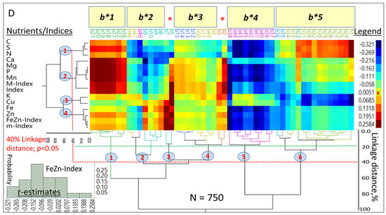 Figure 5A summarized 2190 observations, and at the 40% linkage distances, macro- and micronutrients and their respective indices (
