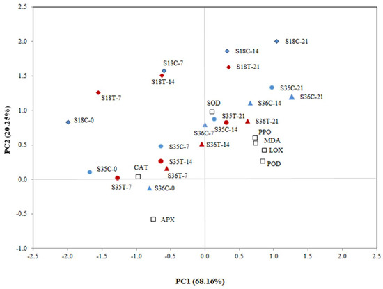 | Cultivar/Selection | Storage Time (Days) | Treatment | CAT (μmol kg−1 s−1) | APX (μmol kg−1 s−1) | SOD (U 103 kg−1) |