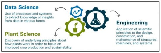 - Dickerson, J.A.; Heindel, T.J.; Lawrence-Dill, C.J.; Schnable, P.S. Training Students with T-Shaped Interdisciplinary Studies in Predictive Plant Phenomics. In Proceedings of the 2017 ASEE Annual Conference and Exposition, Columbus, OH, USA, 25–28 June 2017. Paper Number: 20006. [Google Scholar]