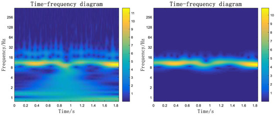 Time-frequency image of sequences and TF image after wavelet reconstruction.