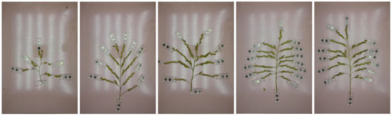 - Walter, A.; Scharr, H.; Gilmer, F.; Zierer, R.; Nagel, K.A.; Ernst, M.; Wiese, A.; Virnich, O.; Christ, M.M.; Uhlig, B.; et al. Dynamics of seedling growth acclimation towards altered light conditions can be quantified via GROWSCREEN: A setup and procedure designed for rapid optical phenotyping of different plant species. New Phytol. 2007, 174, 447–455. [Google Scholar] [CrossRef] [PubMed]