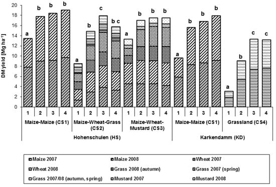 - Graß, R.; Heuser, F.; Stülpnagel, R.; Piepho, H.-P.; Wachendorf, M. Energy crop production in double-cropping systems: Results from an experiment at seven sites. Eur. J. Agron. 2013, 51, 120–129. [Google Scholar] [CrossRef]