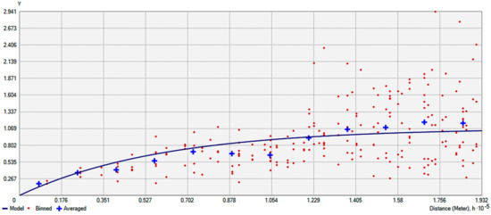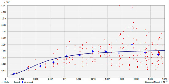 For the case of ETo, the best results were obtained using the ordinary kriging method. Furthermore, the rational quadratic semivariogram model fitted adequately well in the studied dataset as can be seen in Figure 6. It was also found that in this case considering anisotropy did not improve the interpolation performance. It should be noted once again that the interpolation parameters evaluation was made using as a paradigm the 30 years average annual ETo.