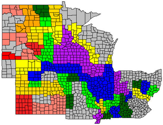 - USDA NASS. Charts and Maps. Available online: https://www.nass.usda.gov/Charts_and_Maps/Crops_County/boundary_maps/indexgif.php (accessed on 20 July 2018).