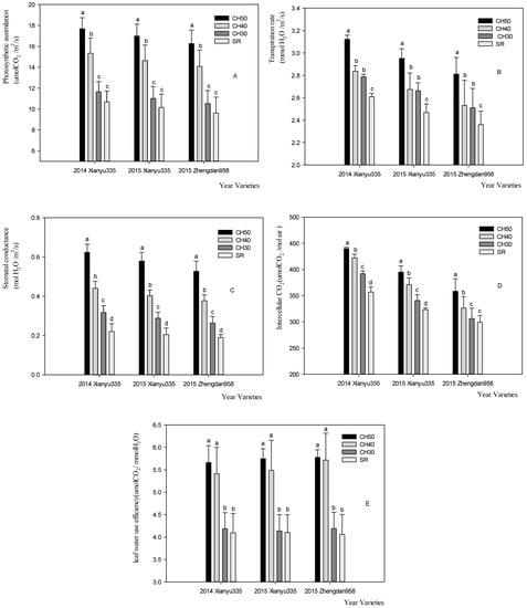 | 2015 XianYu 335 | CH50 | 85.1 ± 2.59 a | 33.5 ± 2.89 b | 44.9 ± 4.81 a | 163.6 ± 16.29 a | 18.5 ± 0.50 a | 8.84 |