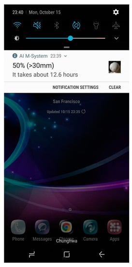 The Embarcadero C++ Builder was used to develop the proposed system. The Windows SDK was also used to build the multi-thread image detection system. The interface has the advantage of easy operation, as shown in Figure 7. The user only needs to set the image measurement period (Model I/II/III) and the expected harvest size of the mushrooms. The rest are automatic executed by the designed system. The MQTT is used for message broadcasting. The measurement system is set as the Publisher, the MQTT server is set locally to be the Broker, and the Subscriber is the corresponding app on a mobile phone.