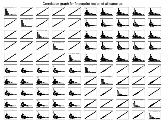 Plot of the pairwise correlations between the oil samples from the FT-IR spectra. Diagonal values are measures of sampling adequacy for individual fingerprint regions of oil samples; off-diagonal are anti-image correlations. In the case of high values of correlation, we have (nearly) linear dependence, otherwise nonlinear.