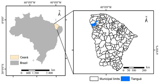 Location of the state of Ceará in Brazil and the experimental area in the district of Tianguá, Ce.