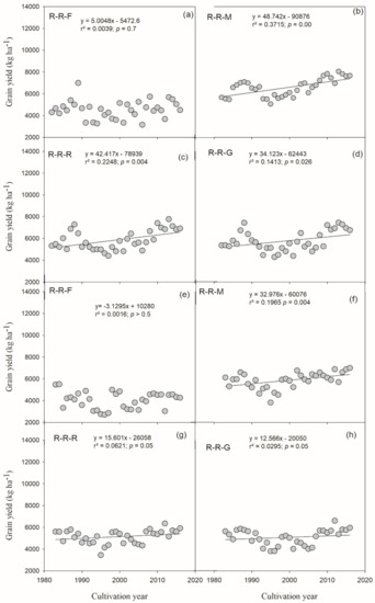 - Tirol-Padre, A.; Ladha, J.K. Integrating rice and wheat productivity trends using the SAS mixed-procedure and meta-analysis. Field Crop. Res. 2006, 95, 75–88. [Google Scholar] [CrossRef]