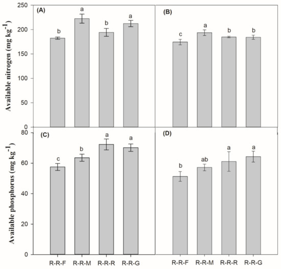 | R-R-R | 5853 ± 917 b | 5135 ± 623 b | 0.64 b | 0.71 a | 0.73 ab |