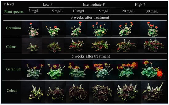 4.3. Optimal P Rate of Geranium and Coleus Plants Is Varied by the Growth Phase