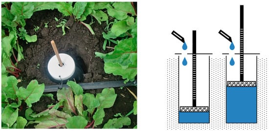 - Smajstrla, A.G.; Harrison, D.S.; Duran, F.X. Tensiometers for Soil Moisture Measurement and Irrigation Scheduling; Agricultural and Biological Engineering Department, Florida Cooperative Extension Service, Institute of Food and Agricultural Sciences, University of Florida: Gainesville, FL, USA, 1998; CIR487. [Google Scholar]