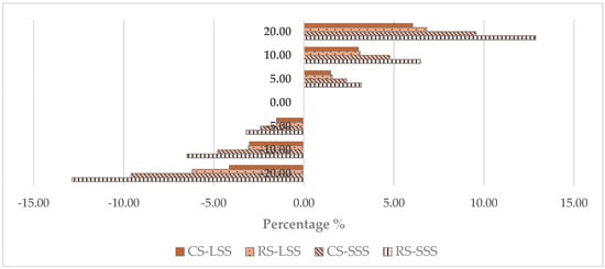 Sensitivity analysis—hourly cost vs. efficiency (RS—Robotic System; CS—Conventional System; SSS—Small-Scale Scenario; LSS—Large-Scale Scenario).