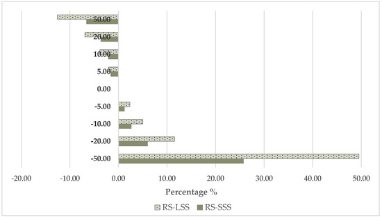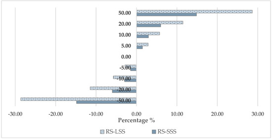 Sensitivity analysis—total cost vs. purchase price (RS—Robotic System; SSS—Small-Scale Scenario; LSS—Large-Scale Scenario).