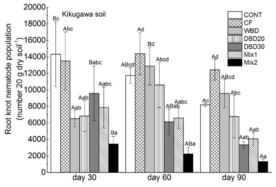 - Watanabe, T.; Masumura, H.; Kioka, Y.; Noguchi, K.; Min, Y.Y.; Murakami, R.; Toyota, K. Development of a direct quantitative detection method for Meloidogyne incognita and M. hapla in andosol and analysis of relationship between the initial population of Meloidogyne spp. and yield of eggplant in an andosol. Jpn. J. Nematol. 2013, 43, 21–29. [Google Scholar] [CrossRef]