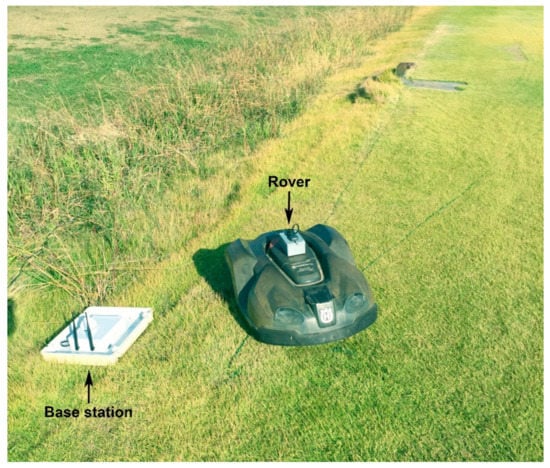 Both devices were managed by the web interface ReachView [32], which allows settings, analysis parameters, and the downloading of positioning and time data acquired. Data were recorded from the rover and the base, and were processed afterwards. RTKLIB version 2.4.3 was used to process data. The off-line processing of data enabled a position file (a formatted text file, .pos) to be created, which reported the relative positions (east, north, and up (ENU) components) between the rover and the base station (baseline), which represented the trajectories travelled by the robot mower in the turfgrass area.