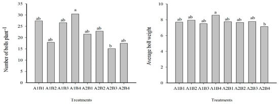 Number of bolls per plant and average boll weight were measured according to the method [24]. Opened bolls from tagged plants of each plot (the same ten plants used for plant growth determination) were counted, harvested, and air-dried to a constant weight.
