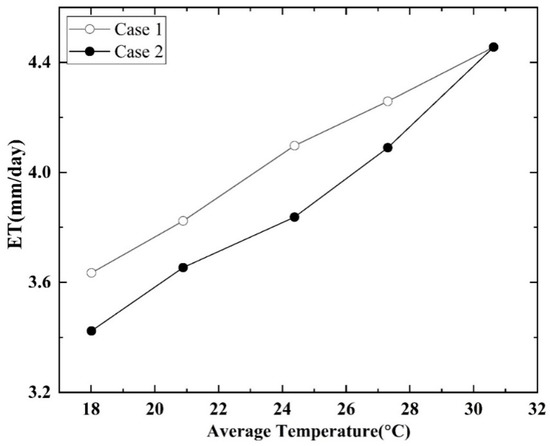 Relationship curves between ET (mm/day) and ambient temperature based on case 1 and 2.