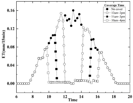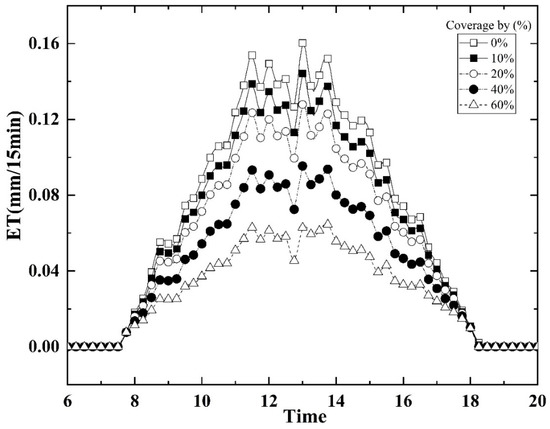 Comparison of real time ET with no coverage and with 60% coverage from 11AM to 3PM.