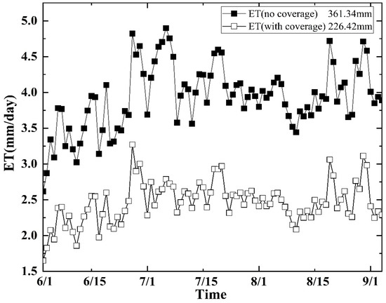 This is representative of ET from an extensive surface of growing green grass of uniform height, completely shading the ground and with adequate water [31]. In this equation, the climatological data for solar radiation, air temperature, humidity, and wind speed used are based on the measurements from the field described in Section 2. To ensure the integrity of computations, the meteorological data are measured at 2 m above an extensive surface of green grass.