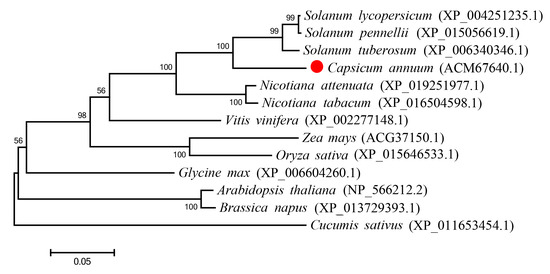 The isoelectric point (pI) and molecular weight (MW) of CaBPM4 were analyzed using the online tool (https://www.expasy.org/), and conserved domains were identified using an NCBI tool (available online: http://www. ncbi.nlm.nih.gov/cdd/) according to the method described by He et al. [38].