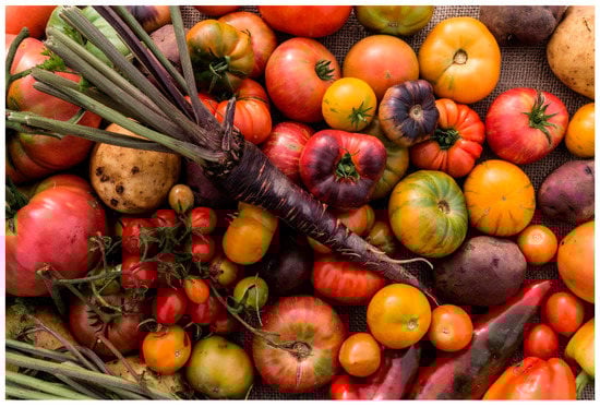 - Goldman, A. The Heirloom Tomato: From Garden to Table: Recipes, Portraits, and History of the World’s Most Beautiful Fruit; Bloomsburry: New York, NY, USA, 2008. [Google Scholar]