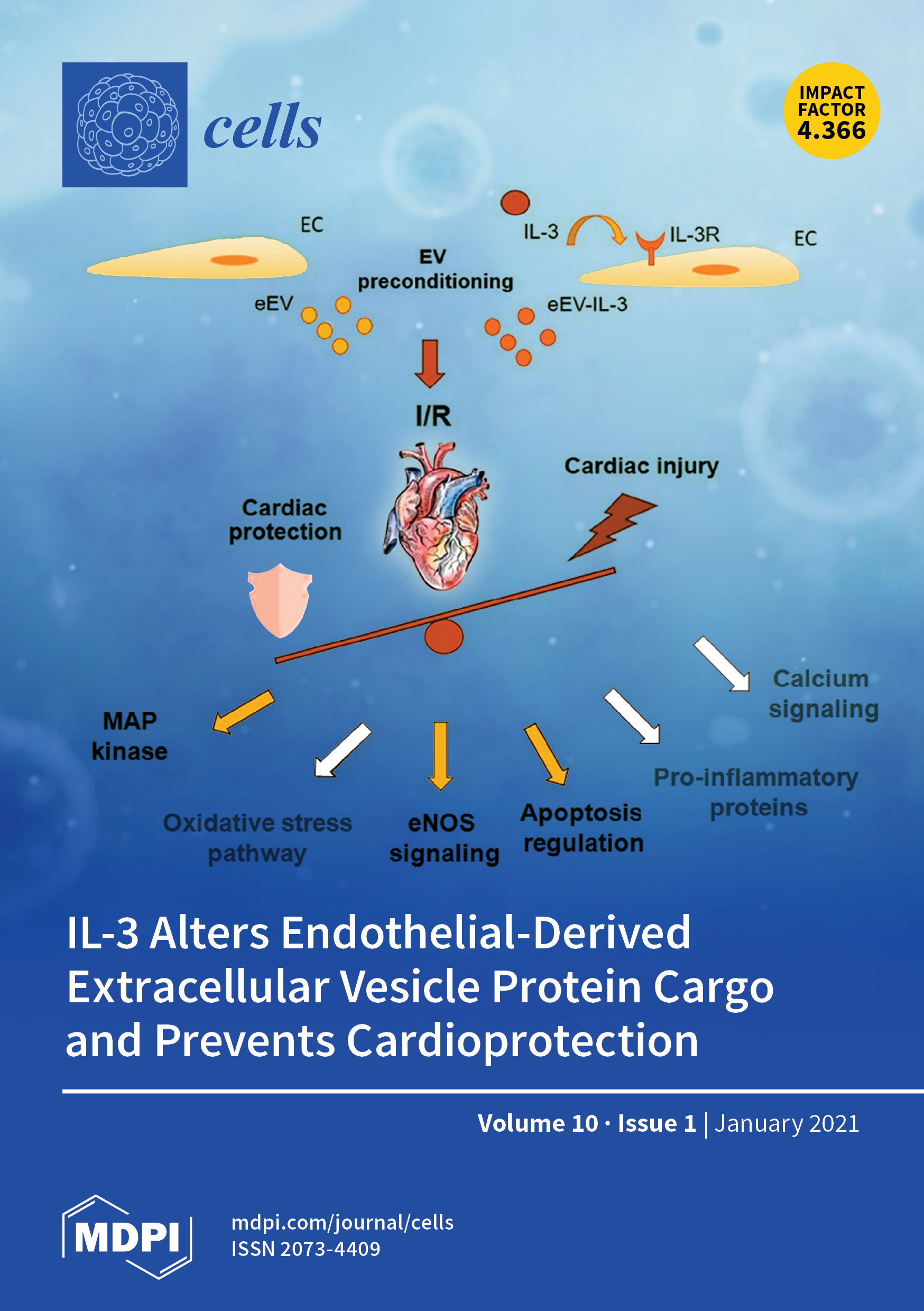 Cover Story: The role of extracellular vesicles (EV) in I/R settings remains controversial. This is particularly true for EV released by endothelial cells (EC) at the site of inflammation. Herein, the impact and the potential mechanisms of action of naïve EC-derived EV (eEV) and eEV released in response to interleukin-3 (IL-3) (eEV-IL-3) were explored in an I/R setting. We demonstrated that eEV, unlike eEV-IL-3, displays cardioprotective properties by activating the mitogen-activated protein kinase kinase (MEK1/2)/eNOS/guanylyl-cyclase (GC) pathways and by boosting antiapoptotic signals involving the B-cell-lymphoma-2 (Bcl-2) protein. Overall, our study demonstrated that the inflammatory cytokine IL-3 changes the eEV protein cargo and hampers eEV-mediated cardioprotection by transferring caveolin 1, as well as inflammatory and apoptosis cues. The role of extracellular vesicles (EV) in I/R settings remains controversial. This is particularly true for EV released by endothelial cells (EC) at the site