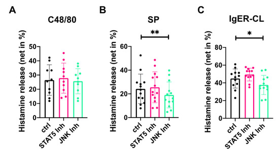 3.4. The Promotion of MRGPRX2 Function by TSLP Is STAT5-Dependent with Further Contribution from JNK